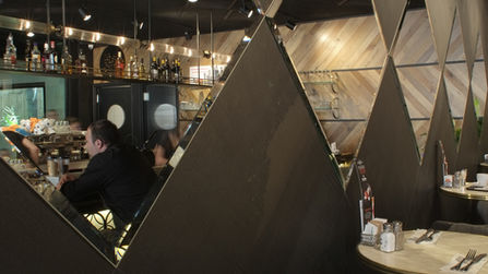 משחק חומרי של מתכת, עץ ומראות | צילום: אלכס דרייגור
