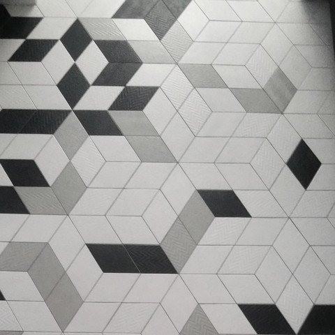 לא, בעלי יותר. הוא הבשלן בבית והוא מאוד אוהב את זה אז עשיתי את זה בשבילו. האריחים ברצפה סודרו אחד אחד. הכנתי תכנית מפורטת לכל אריח. כשמסתכלים עליהן מלמעלה אפשר לראות תלת ממד, כמו קוביות תלת ממד שמתפרשות על הרצפה. הרצף ישב עם התכנית שלי וסימן X וסימונים מיוחדים על האריחים לפני שהניח... לא פשוט.